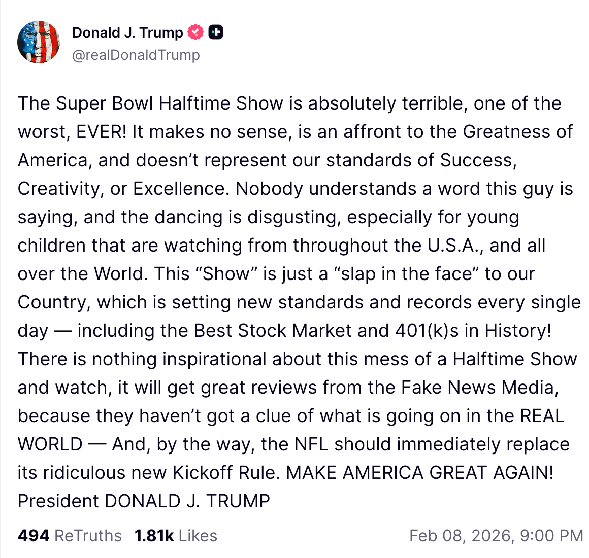 THE GOAT SPEAKS https://truthsocial.com/@realDonaldTrump/posts/116038200403048483