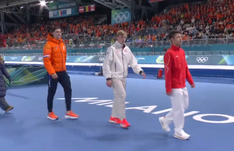 a ch*nam*n interfered with a dutch skater in an earlier race so he got to go again at the end but he was still gassed from how much of it he had already skated hard at the time of the incident