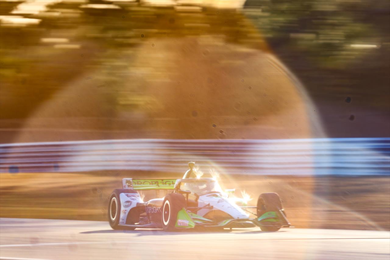 If youre trying to figure out how Schumacher gained a couple spots. This happened near the end>First caution of the day for contact with Caio Collet meeting the Turn 4 wall.>Caio Collet has been seen and released by IndyCar medical.Marshall Pruett>Just talked to Collet's engineer Mike Armbrester, who mentioned that he heard his driver say the sun visibility was an issue into T4 before suspecting dropping his left sides below the yellow line. >Armbrester did say he was on his way to talk with Collet to learn moreJoey Barnes