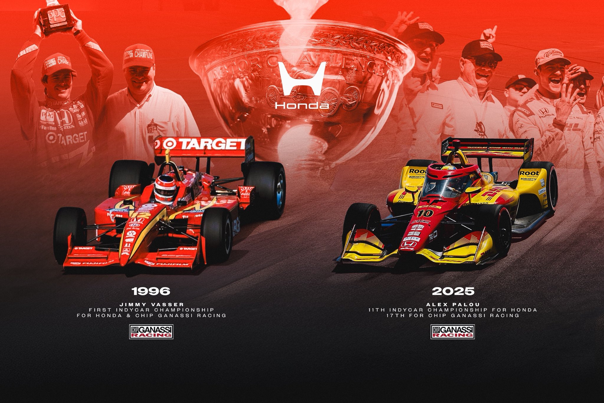 >Chip Ganassi Racing#8 Kyffin Simpson - Finished 2025 - 17th#9 Scott Dixon - 1x Indy 500 Winner - 6 Time Champion - Finished 2025 - 3rd (12 Top 10 Finishes, 1 Win)#10 Alex Palou - 1x Indy 500 Winner - 4 Time Champion - Finished 2025 - 1st (15 Top 10 Finishes, 8 Wins)