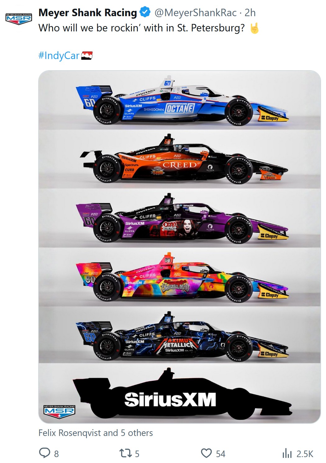 >Meyer Shank Racing w/ technical support from Chip Ganassi Racing#60 Felix Rosenqvist - Finished 2025 - 6th (10 Top 10 Finishes)#66 Marcus Armstrong - Finished 2025 - 8th (11 Top 10 Finishes)**(500 Only) #06 - Helio Castroneves - 4x Indy 500 Winner - Finished 2025 Indy 500 - 10th