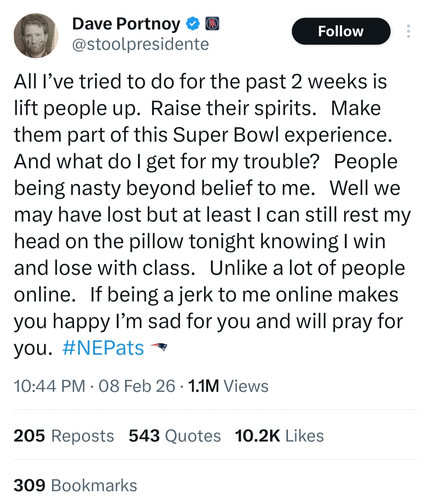 I got b& during the Super Bowl thread and I couldn't fun post during peak fun posting hours.