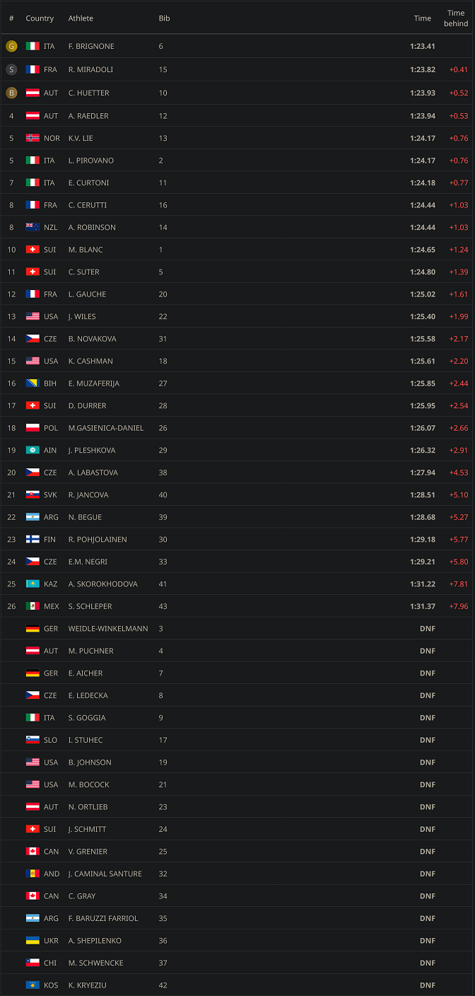 That was NFL level concussion protocol for Choi though, crazy. Huge fall, immobile and out of it for 5 min, they somehow clear her ride down on her own, then collapse again at the bottom and completely out of it for 10 min. Conclusion, yeah you're good to continue.