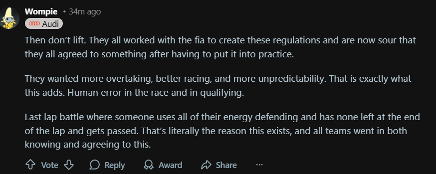 The F1 game is going to be equally as dogshit to play as it is to watch with this energy management