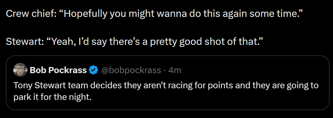 Fun race, great way to start the year. Also tip of the cap to the officials who didn't throw the caution on the spin out.