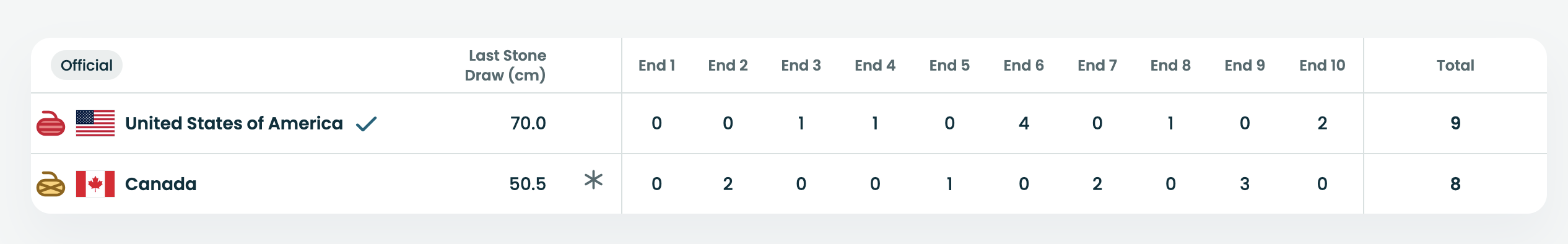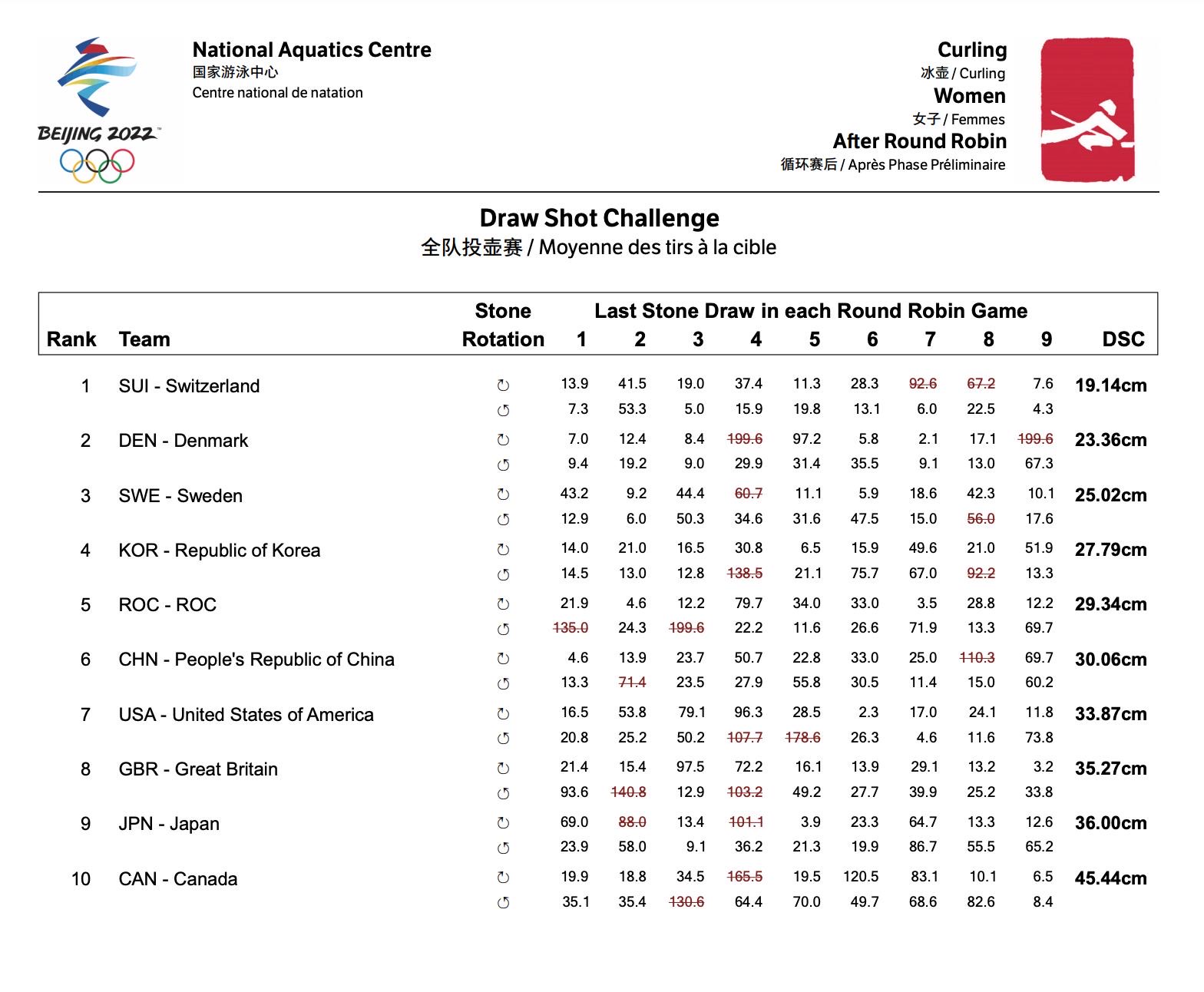 Nice try China. Switzerland wins after the 10th end