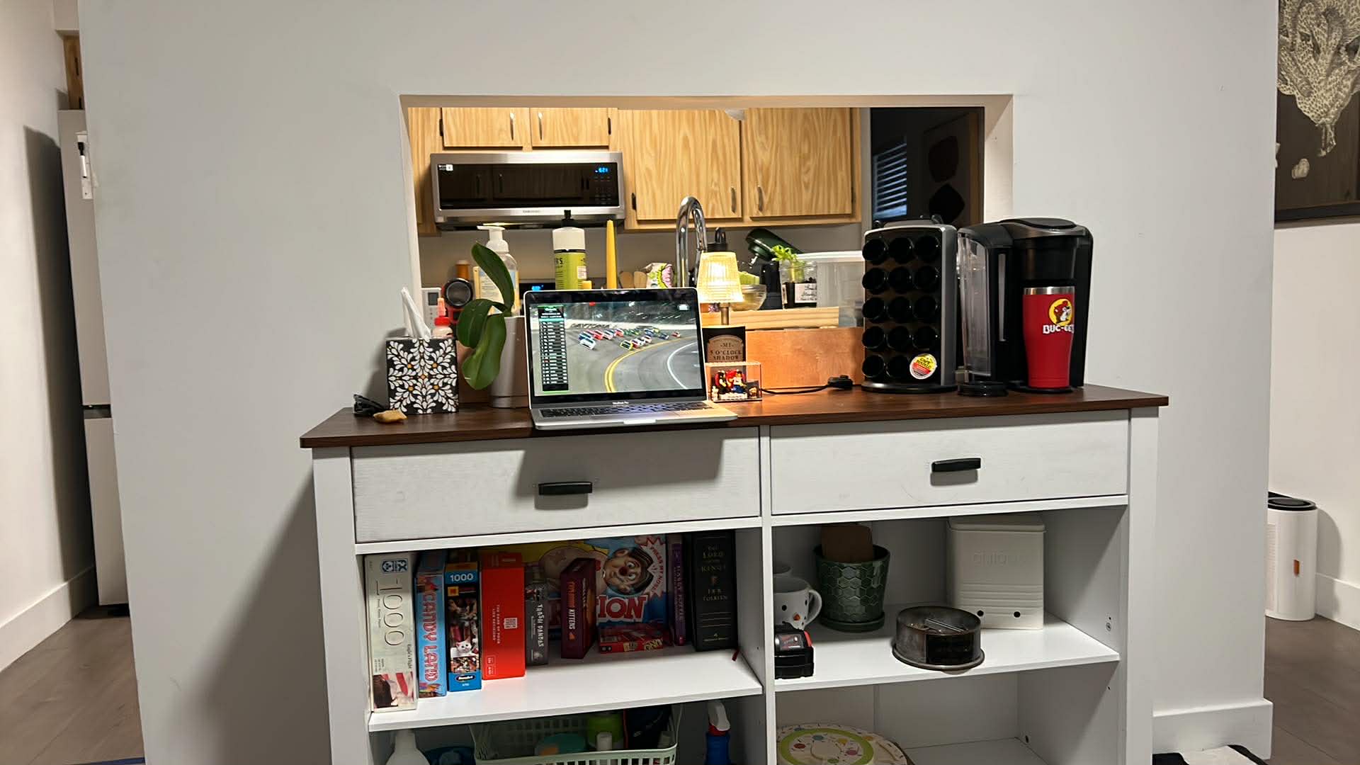 >can't hear the cars because the announcers are too loud
