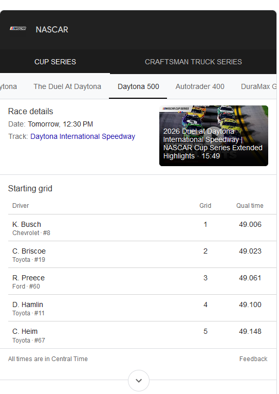 Austin Hill on pole, again.. RCR has won 4 of the last 5 season openers at Daytona.