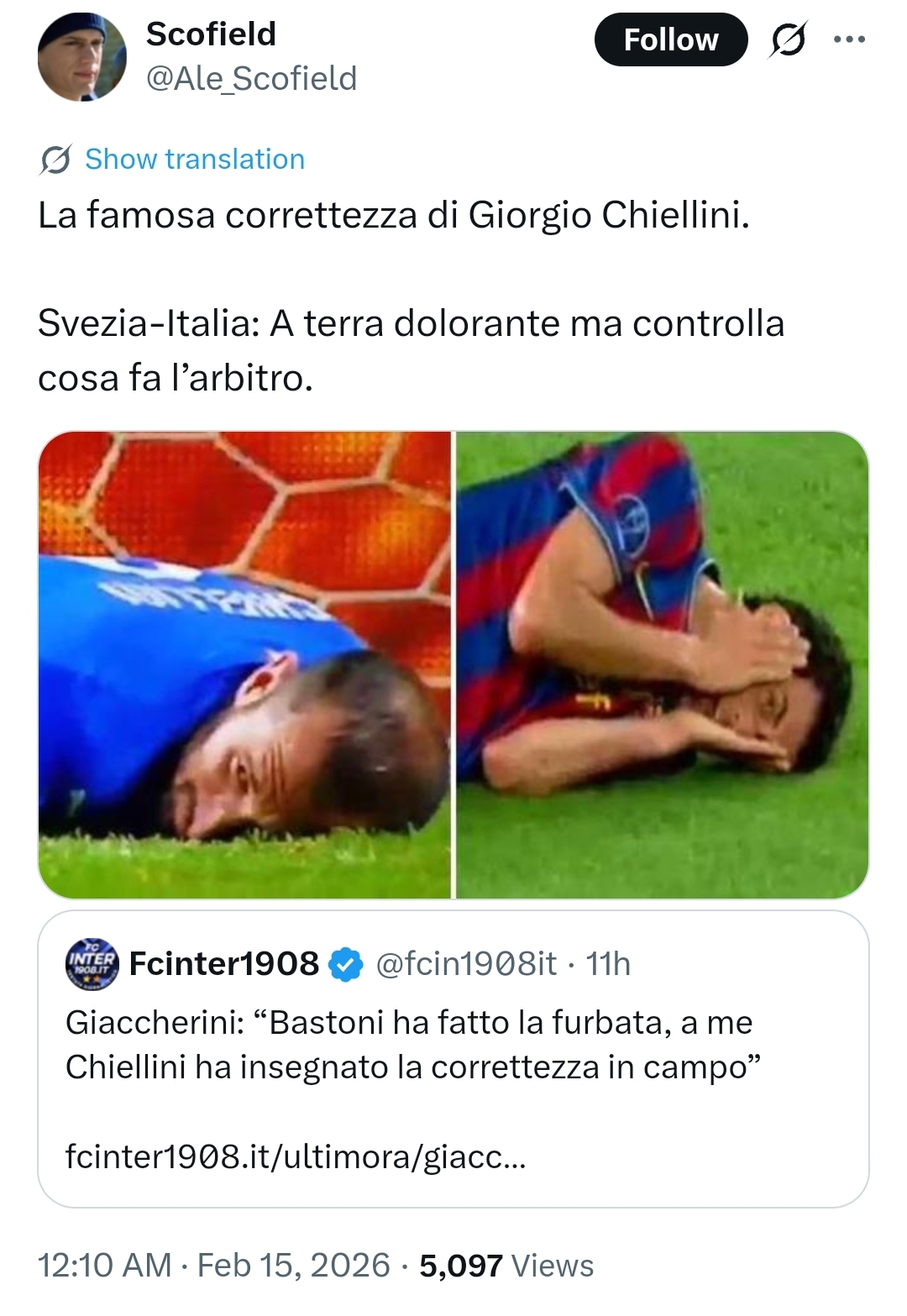 >Former referee Marelli: “Bastoni wanted to deceive the referee and he succeeded. With the new protocol, however, the VAR would have called LaPenna to the monitor, who would have sent Bastoni off for a double yellow card, since he had already received one and would have gotten the second for simulation.”If any of the Interposters had any sort of backbone, they would call this stuff out.