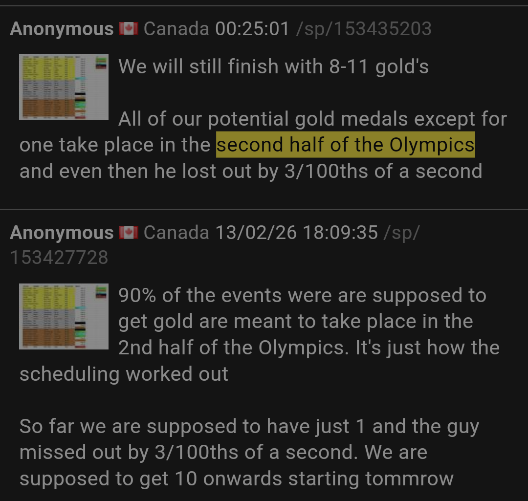 >>153457397KEK the hockey is just one event out 20 we're following this year but for Canada this really is everything