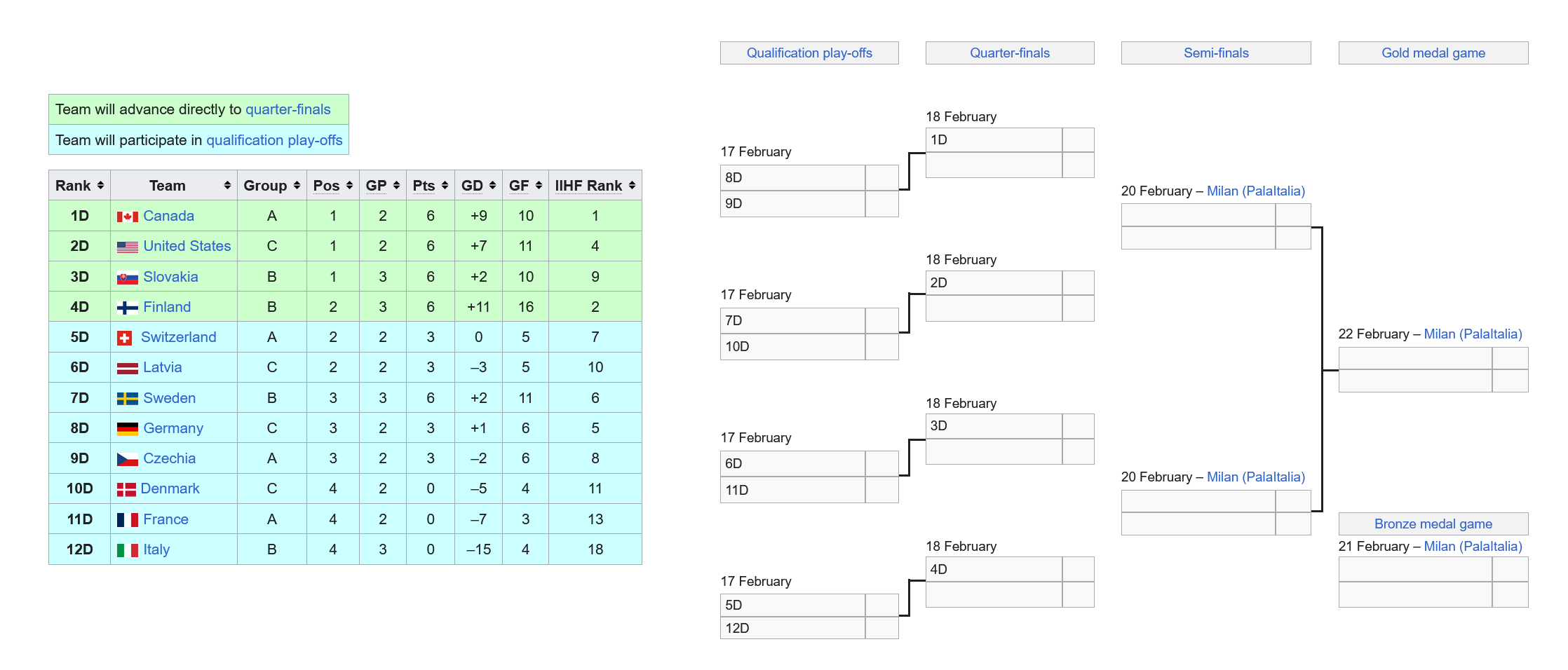 Someone said it's very likely Finland will face either the Swiss or Czechs in the quarters.