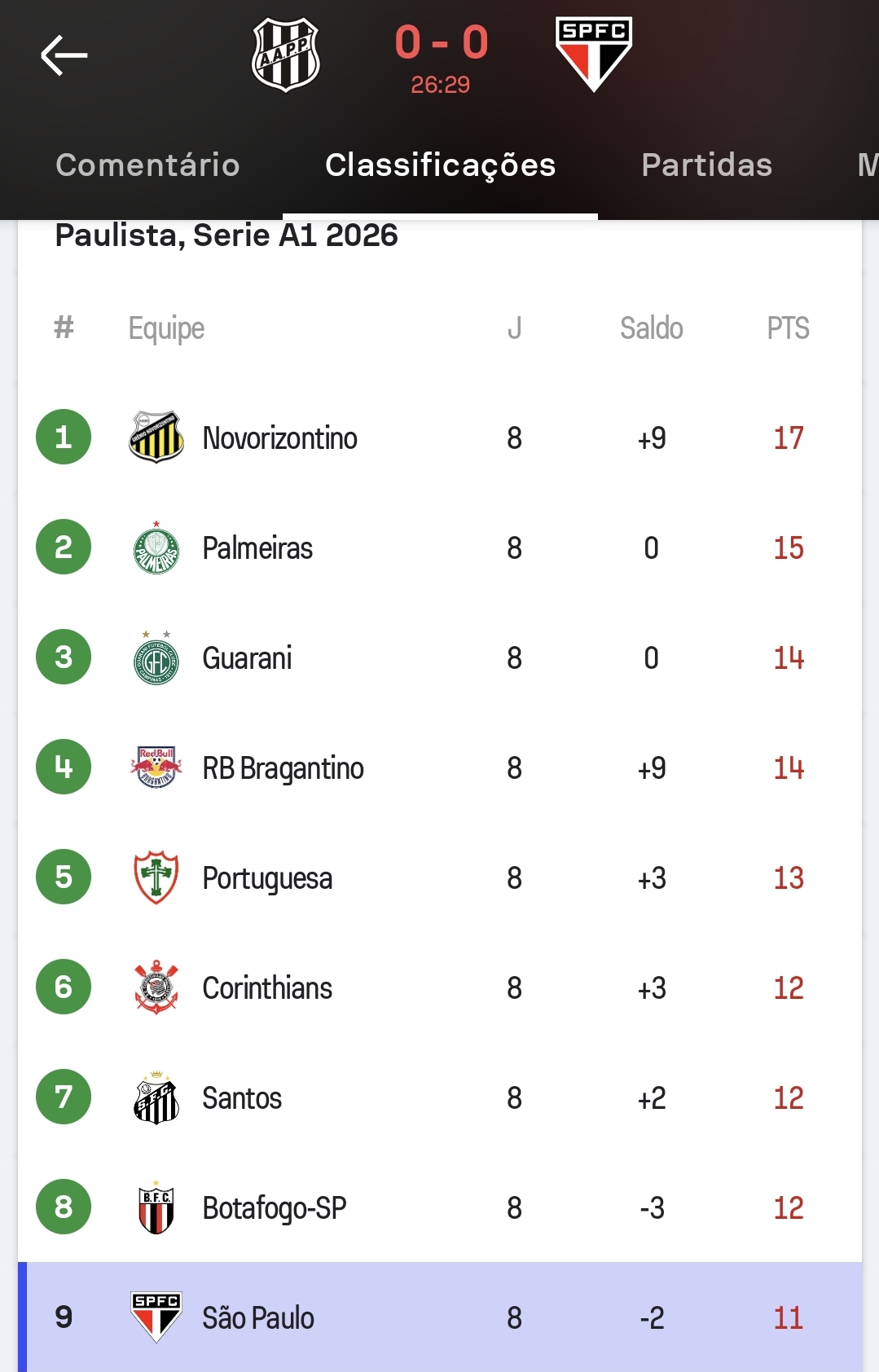 PAULISTÃO - QUARTAS (jogo único)Novorizontino x SantosPalmeiras x CapivarianoRB Bragantino x São Paulo(*)Portuguesa x Corinthians(*) times sistematicamente beneficiados pela arbitragem