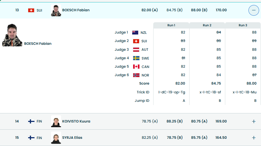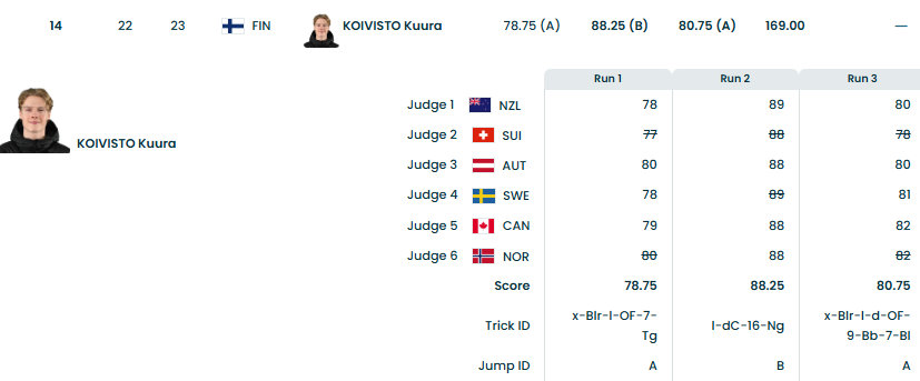 >>153477483yes he judged highest each run for the Swiss ranked above the Finn whom he judged lowest each run. reasonable scores just funny coincidence between thread, rider and judge flags