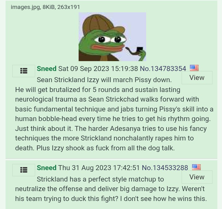 strickland vs fluffy is going to be the biggest nothingburger fight ever put togetherneither can actually hurt each other on the feet, strickland can wrestle well enough to not get ripped to shreds like dolidze on the ground, gonna be 5 rounds of fucking nothing