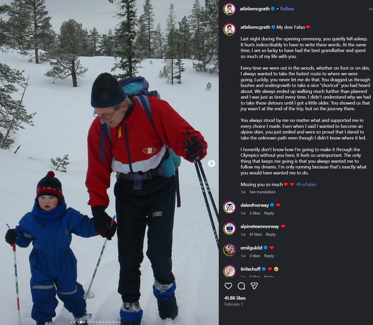 His grandpa died the first day of the Olympics :(