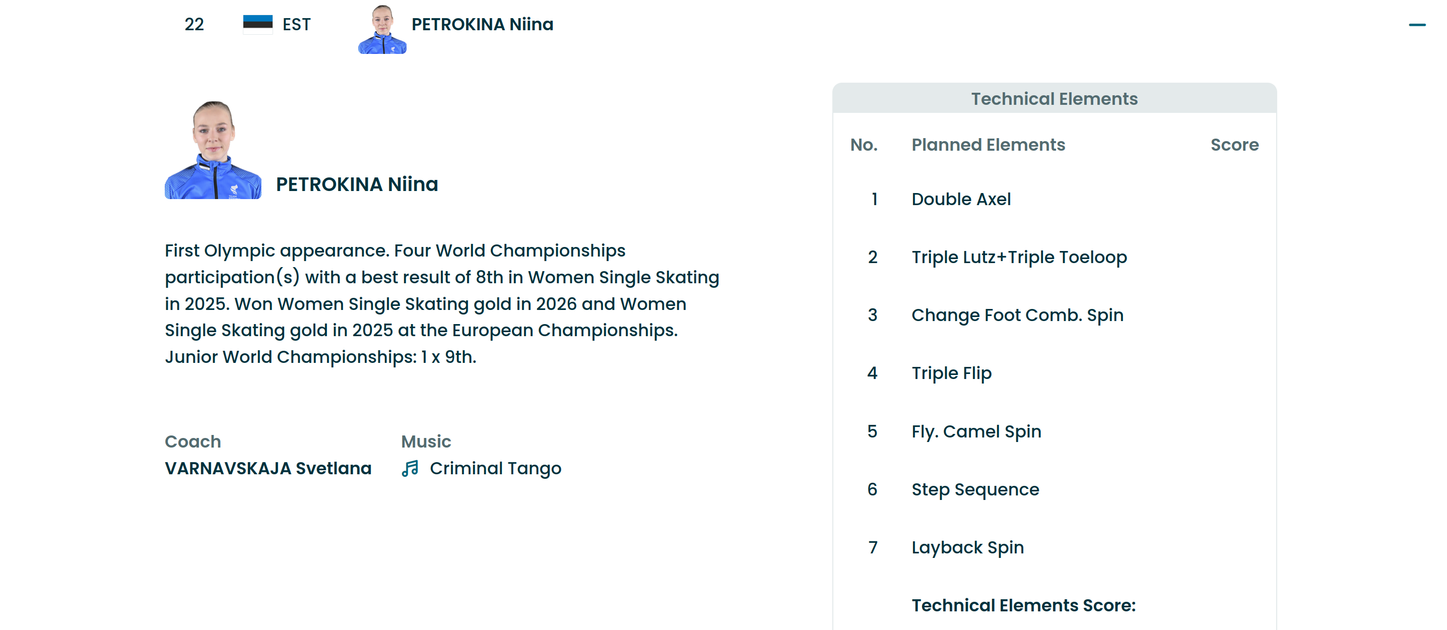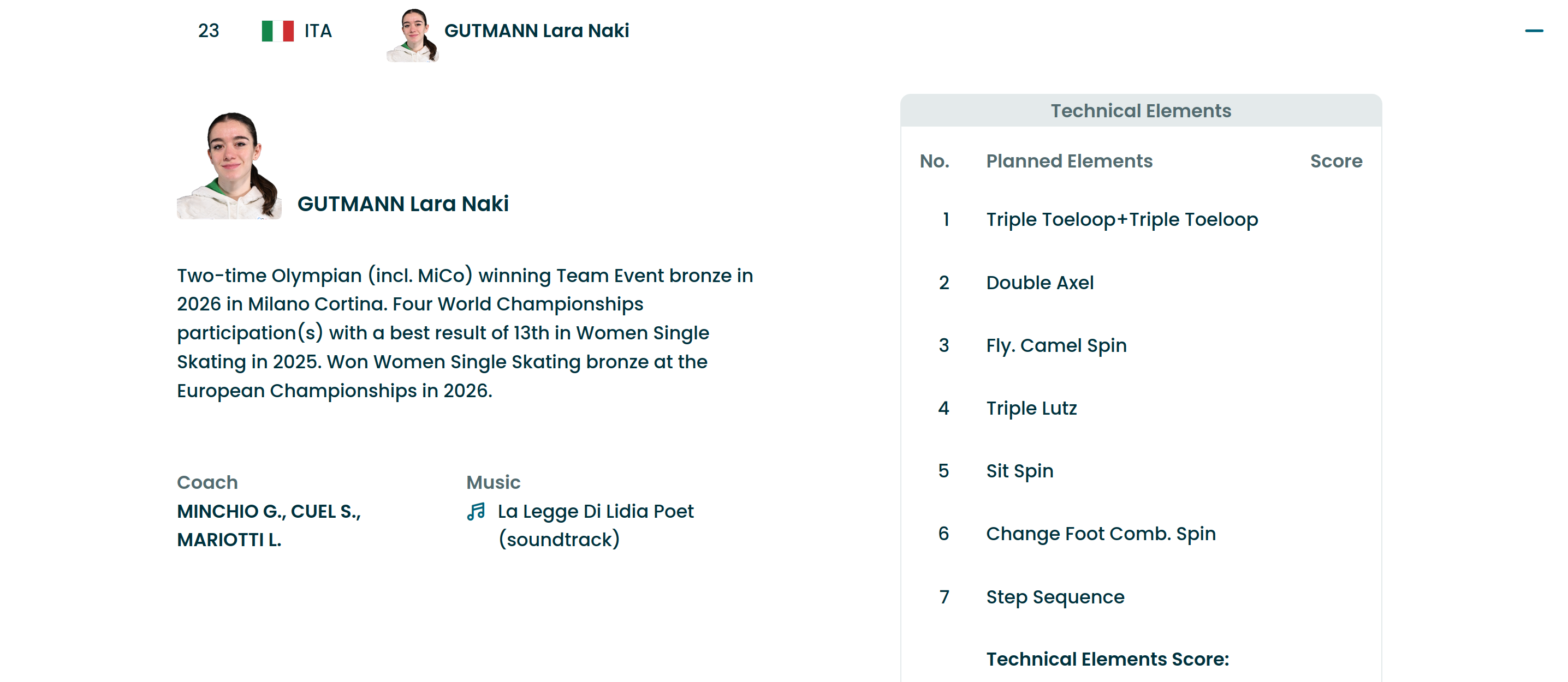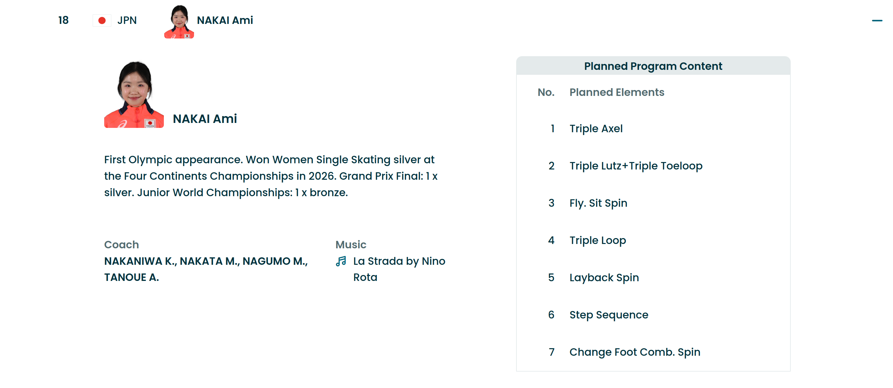 Schedule:https://www.olympics.com/en/milano-cortina-2026/schedule/fskhttps://www.isuresults.com/results/season2526/owg2026/Athletes and Program Content:https://www.olympics.com/en/milano-cortina-2026/results/fsk/ss/w/singles-----------/qual/000100--/resultLive Results:https://www.isuresults.com/results/season2526/owg2026/SEG003.htm3A attempt: Ami Nakai (JPN) and Amber Glenn (USA)Women's Short Program replay from 2022 Beijing Olympic Winter Games:https://www.youtube.com/watch?v=0mWnGJJBciM [Embed]Highlights:https://www.youtube.com/watch?v=IG02kYhYgtQ [Embed]https://www.youtube.com/watch?v=Jra8hYG7QMQ [Embed]https://www.youtube.com/watch?v=Wmb2nrce_YY [Embed]https://www.youtube.com/watch?v=WH67_XoDy3k [Embed]Previous:>>153506784