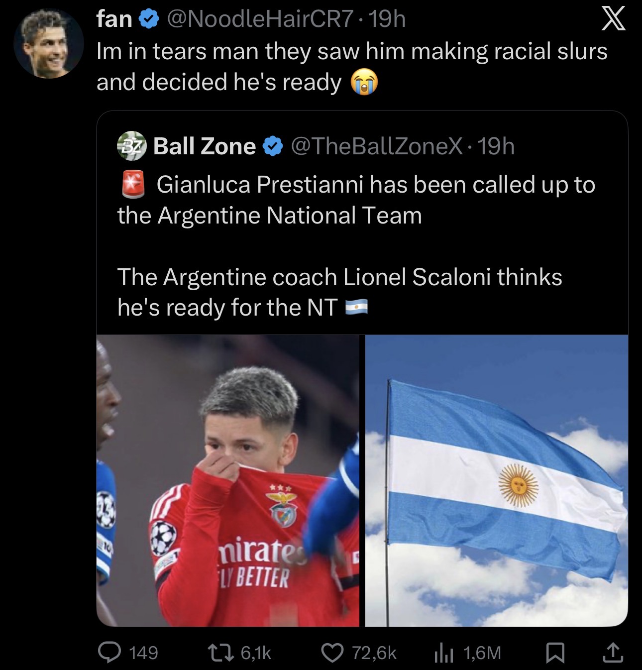 >>153525848>argentina has no black players!>*a black player gets called*>nooo not him! he did a racism!!!