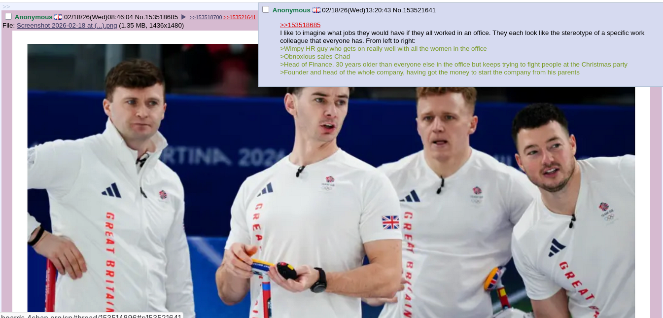 >>153565850>their coach is a raging homosexualDid he betray his team after spending some time with the British skip?