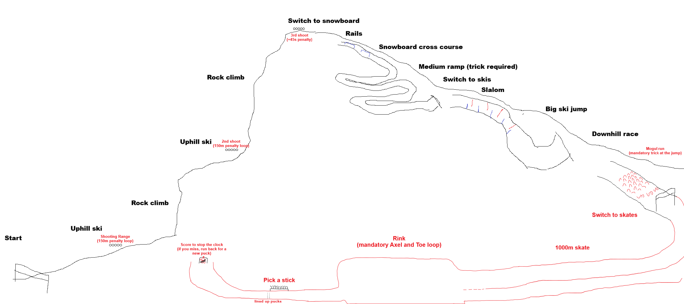 We could have had them ascending an actual mountain and descending in deep snow or maybe the downhill piste which has good scenery but no we get a shitty takeshis castle without crazy japs shooting the athletes. This is the biggest insult since taking the 50km deathmarch from us.