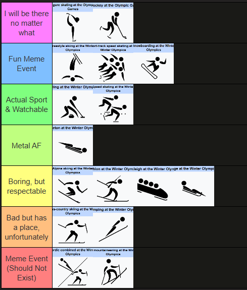 >Spain is decent at thisI'm glad to have a new country be competitive for something at the winter olympics>>153542952most people are complaining about the transitions or the "obstacles", but the downhill is easily the worst part for me, completely pointless. at least everything else actually effects the race even if it looks retardedI swear this could be decent if it was just organized differently