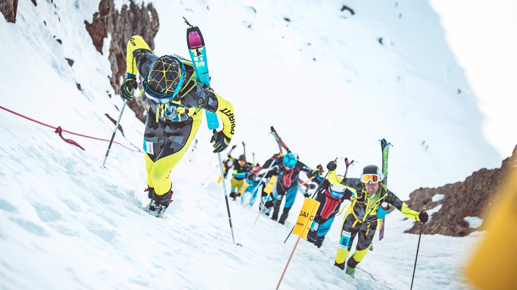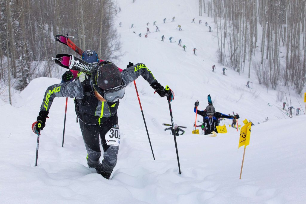 >Skimo racing (short for ski mountaineering racing) takes those same techniques - skinning, climbing, and descending - and turns them into a competitive sport. Races are timed, often featuring multiple ascents and descents, technical transitions, and sometimes bootpack sections with skis strapped to a pack. Fitness, efficiency, and slick transitions are as important as ski and mountaineering ability.>often featuring multiple ascents and descentsso thats a lie