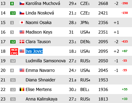 also clara's points from last year dubai finals will drop on monday. -650. that will put her at #30? i think? brutal. then iva becomes new #17. >>153579244i would make a lot more money on the stock market if that were the case :(