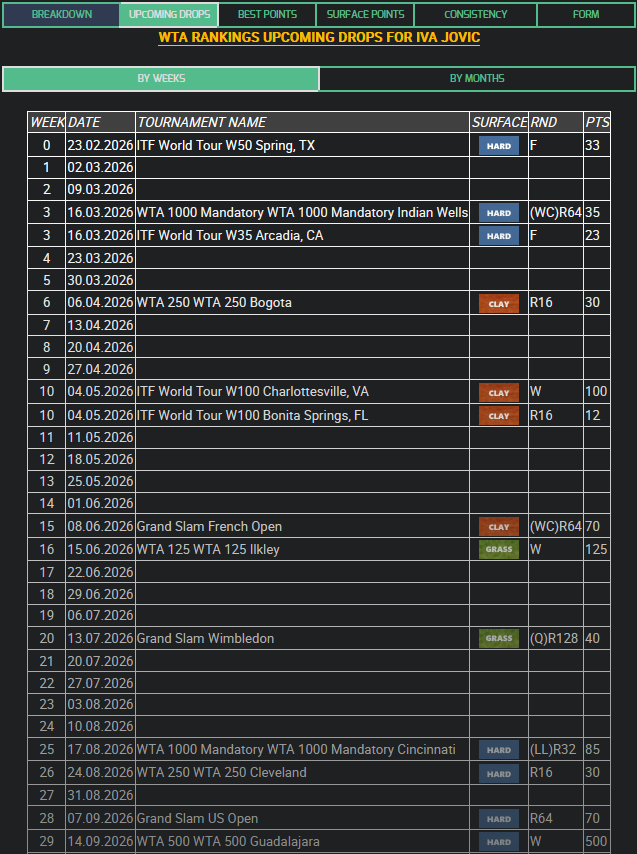 >>153549781* that list of points to drop off may not be entirely accurate. i didn't count her whole year to see which wins contributed to her 2025 total. there some system of 18 total tournaments taken from the year based on etc etc criteria. anyway it's very small numbers for a top 20 player with direct entry in to everything.