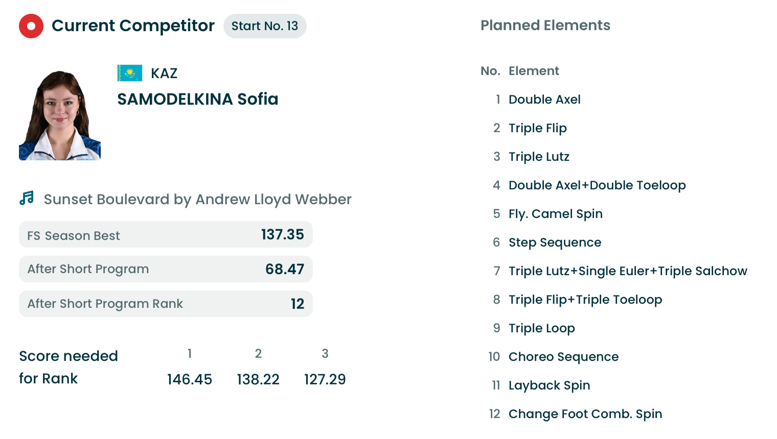 How high of a score do we recon Adeliia needs to win (assuming an unlikely clean program)? I'm guessing 160s. Possibly 165+ if one of the 4 in front of her has a good skate. Probably impossible if Ami has a clean skate with ultra c elements.