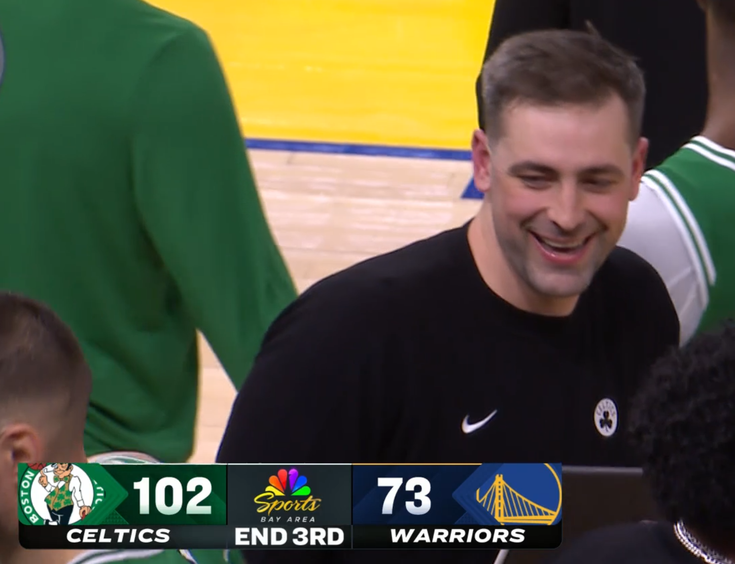 >boston playing golden state in san fran>celtics jerseys everywhere????