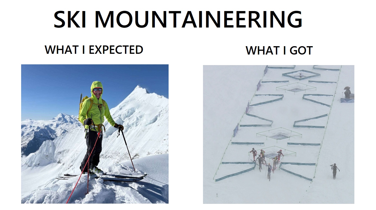 Actual ski mountaineering is awesome, but what we got looked like some obstacle course for children and the whole thing didn't even last three minutes. Absolutely embarrassing.