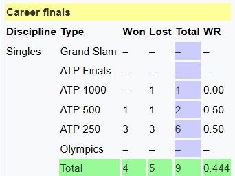 how many finals did he lose/win