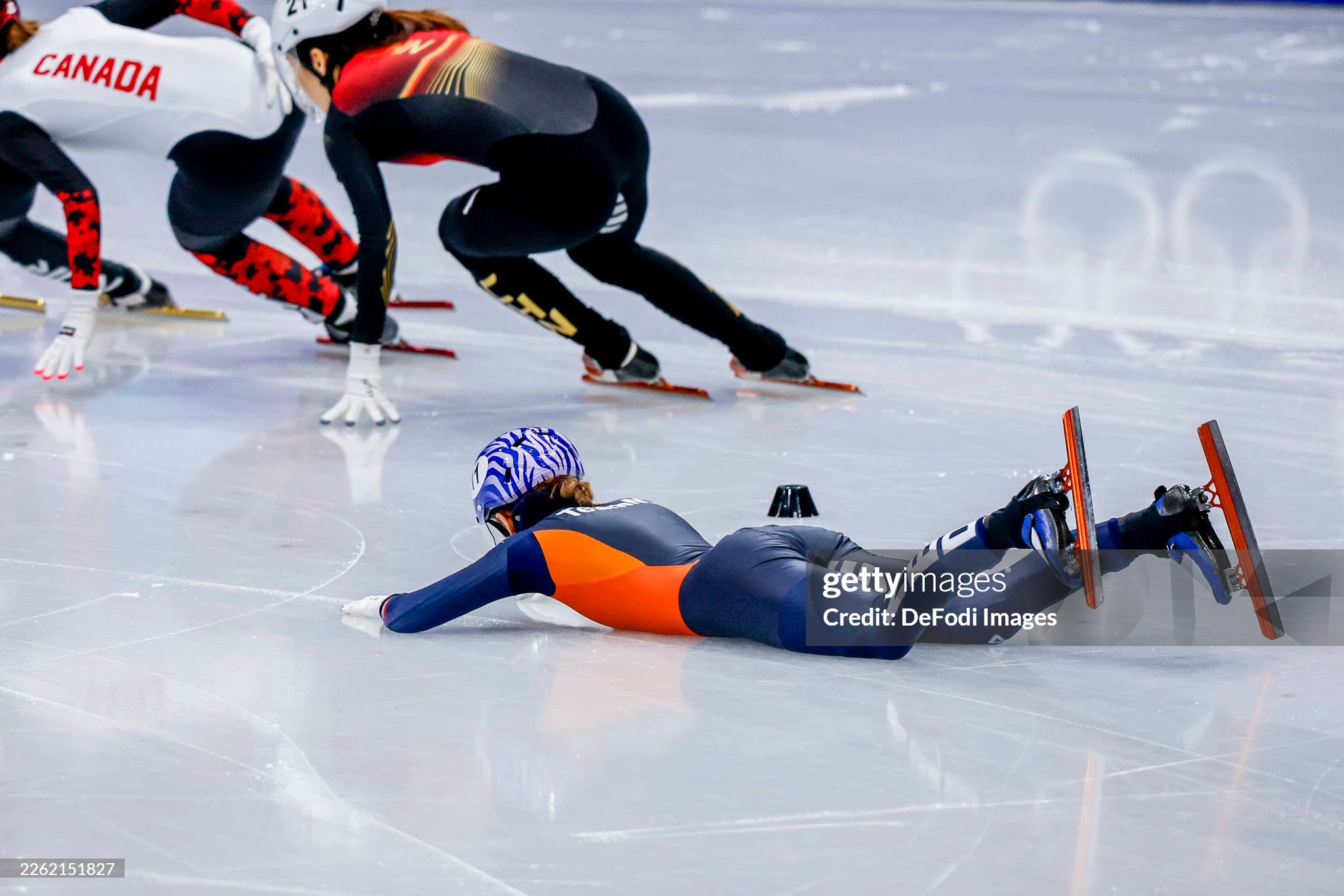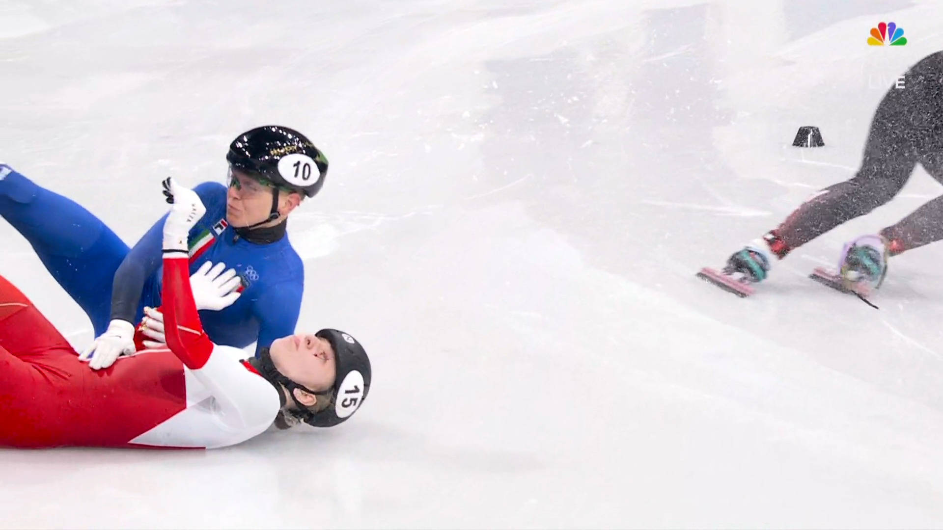 >Velzeboer fallsOh!>It's MichelleOh.Fell in the relay as well.