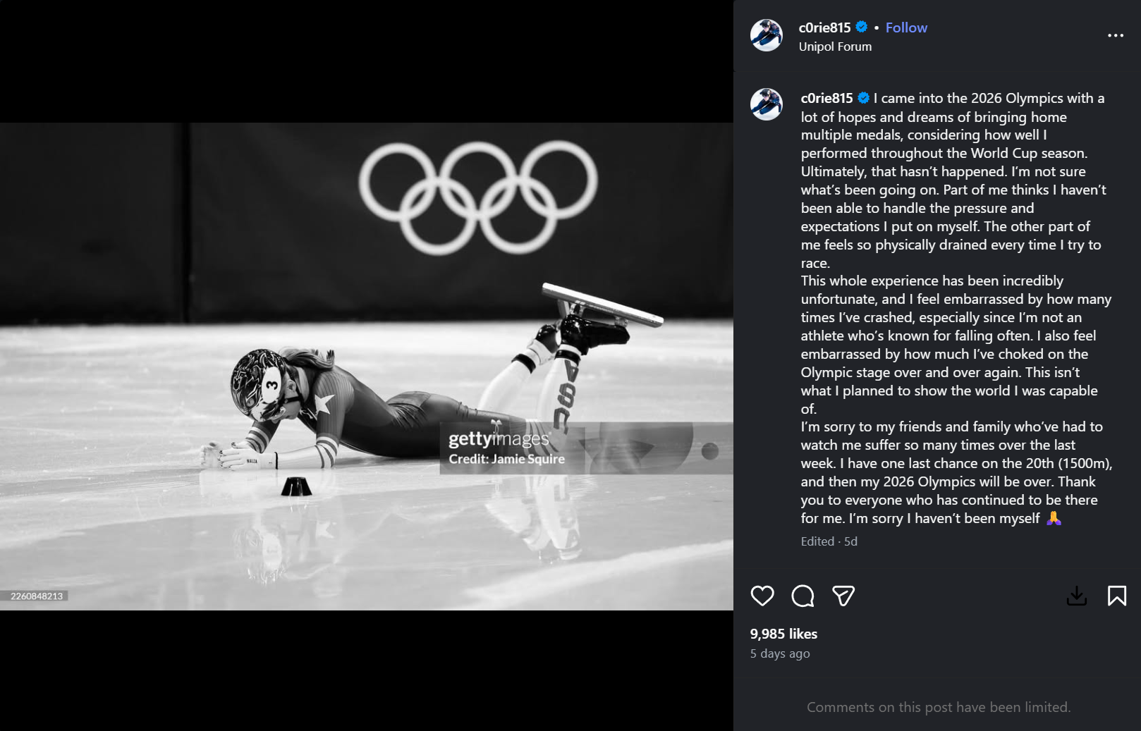 Stoddard sounded legit depressed in her IG post, happy to see her come away with a medal of some kind