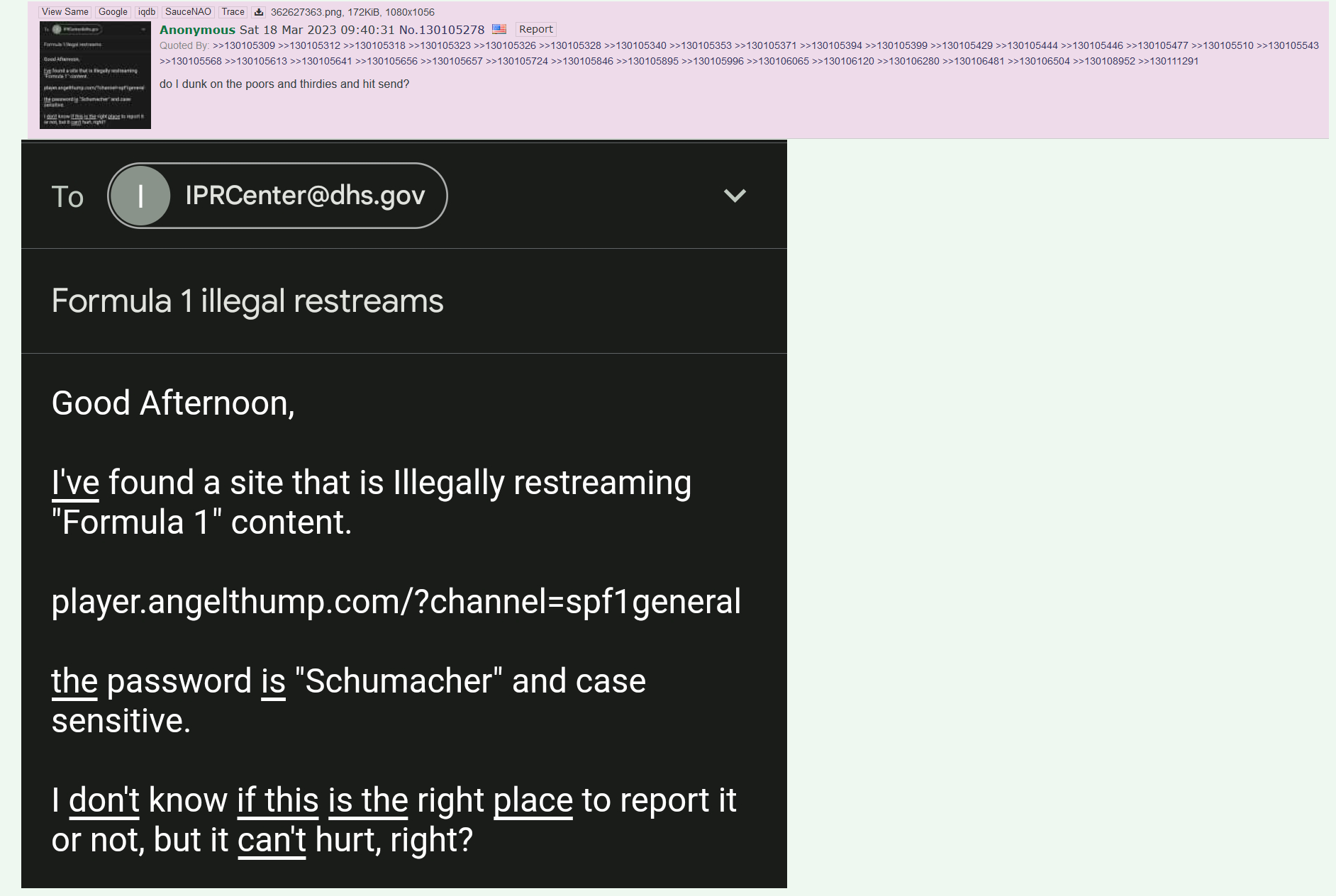 does anyone have the screencap of that american flag who reported the /f1/ stream a couple years ago