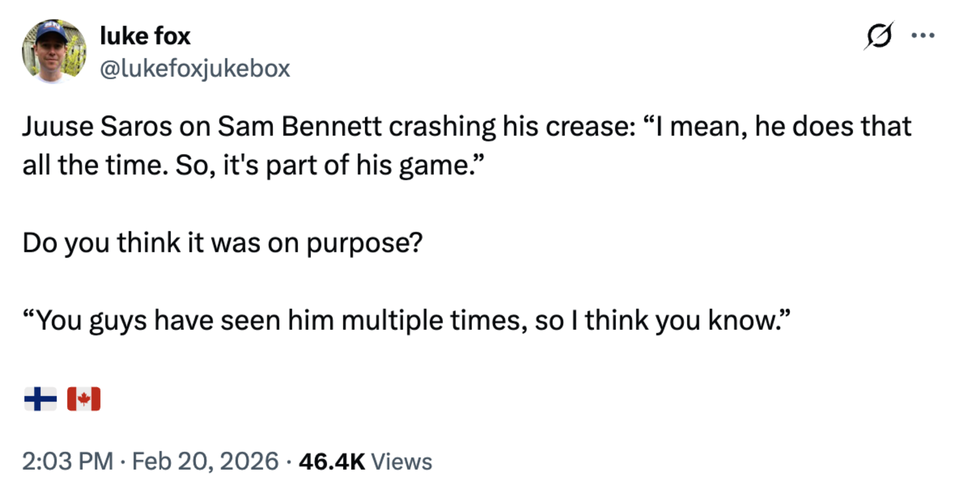 I expect EVERY Finn in here to be cheering for Canada Sunday.