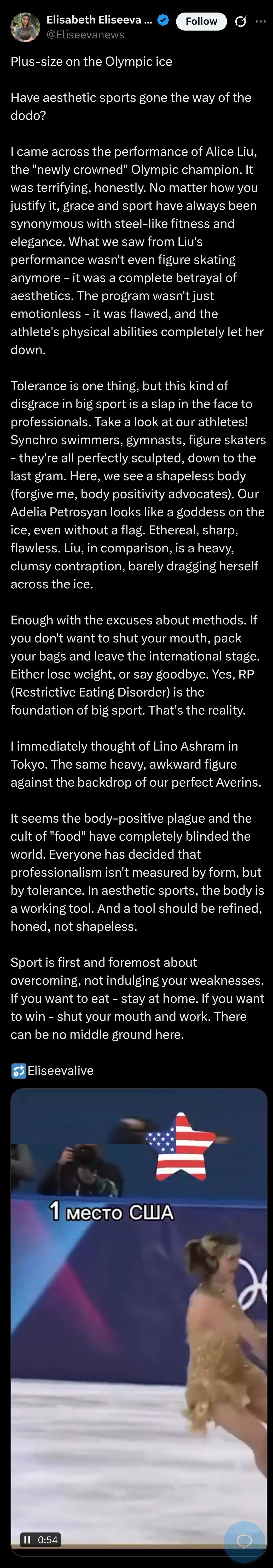 So even the two greatest figure skaters in Russian history loved the competition and think Alysa won. So keep coping faggots, but their opinions matter more than the crying of you cocksuckers