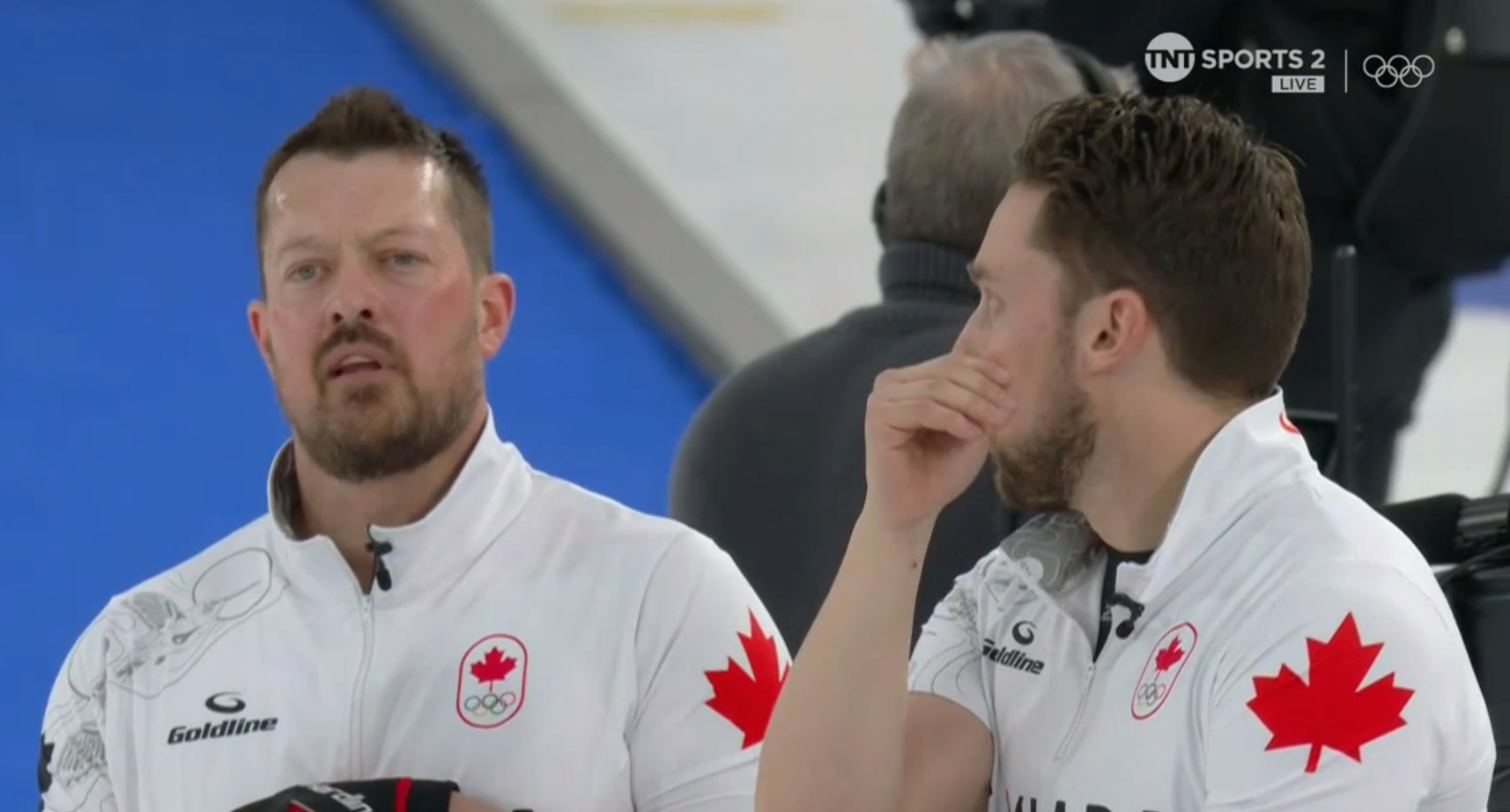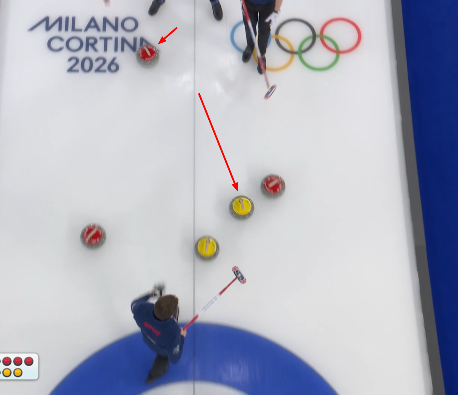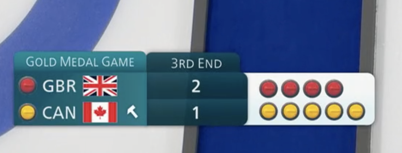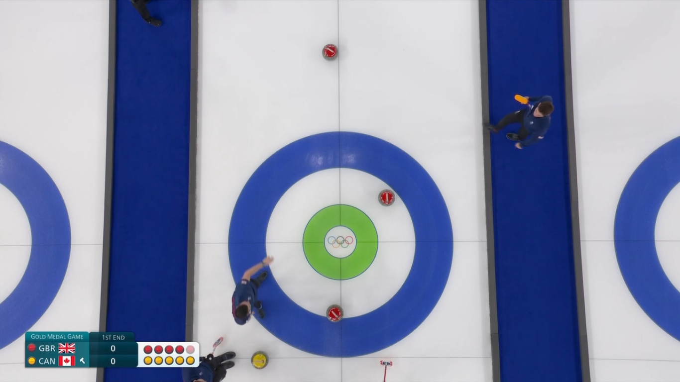 >Canadian skip hitting the British stone with his broom to move it away from his team's stone?????????