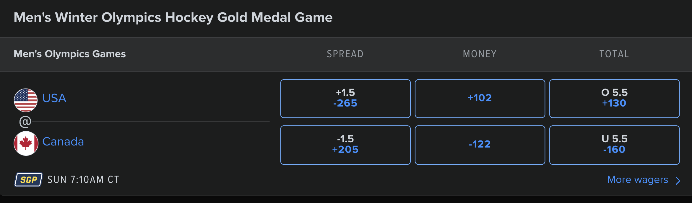 >the betting odds shifted to Canadawhen I checked this morning USA was the slight favorite. https://sportsbook.fanduel.com/winter-olympics