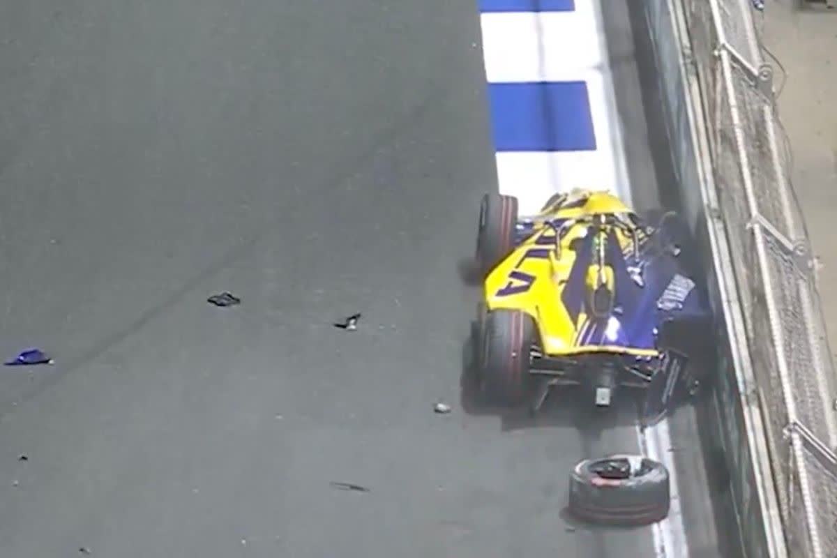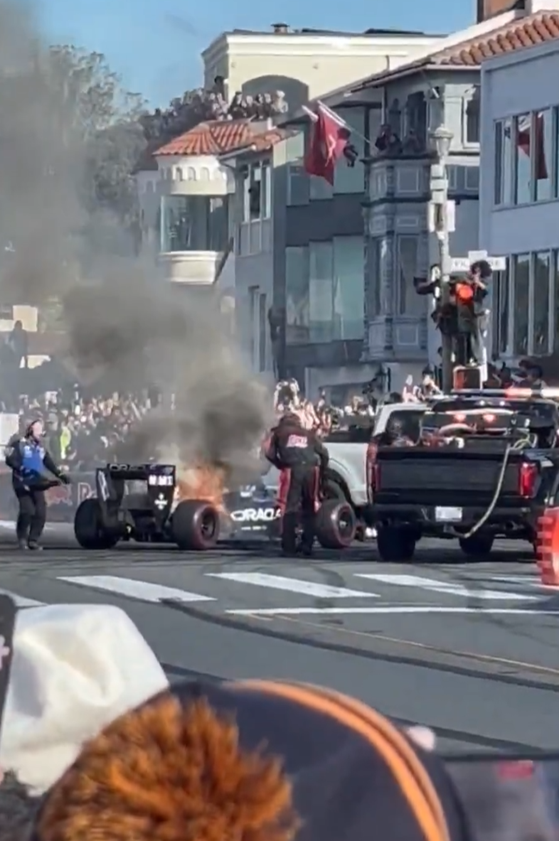 ynr canada 2025 when the williams car couldn't start on time, started falling apart with pieces flying off on straights, drove into the pitlane and caught on fire