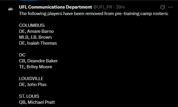 UFL Players report to training camp - starts 2/23