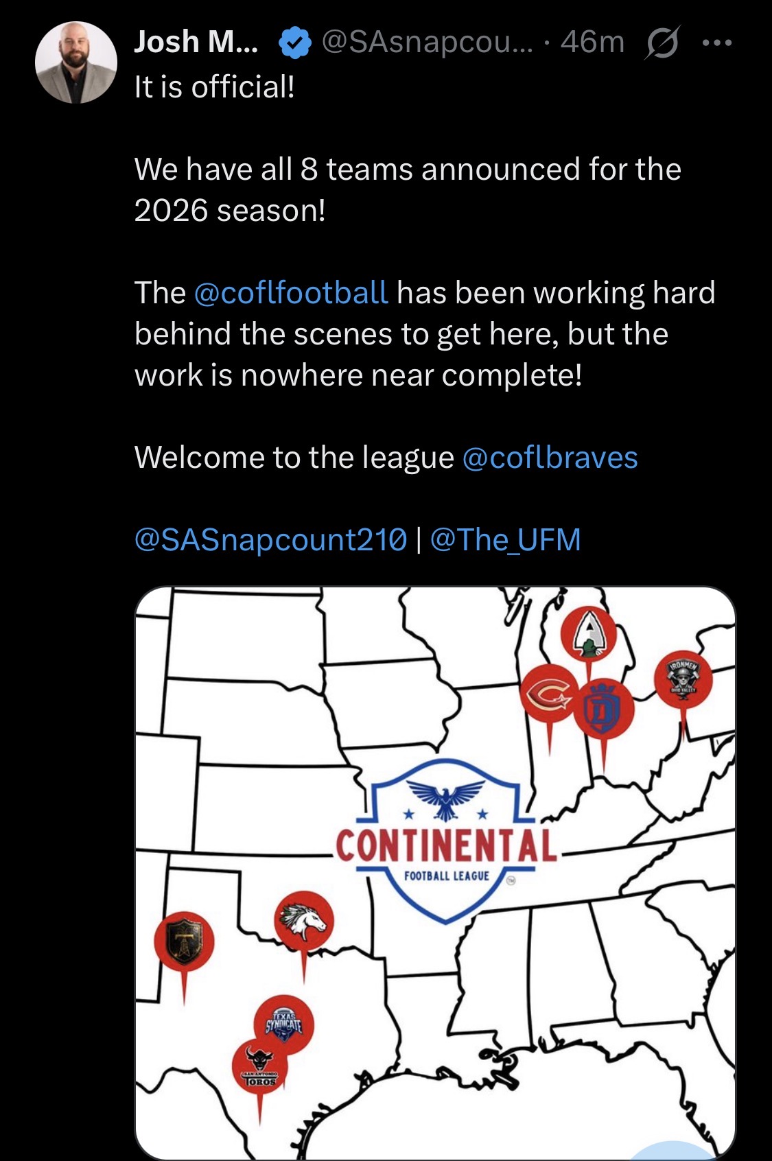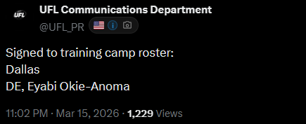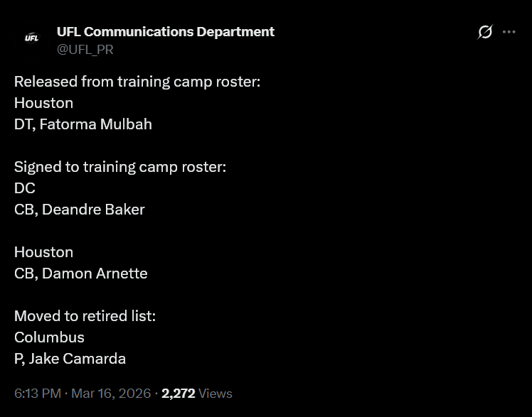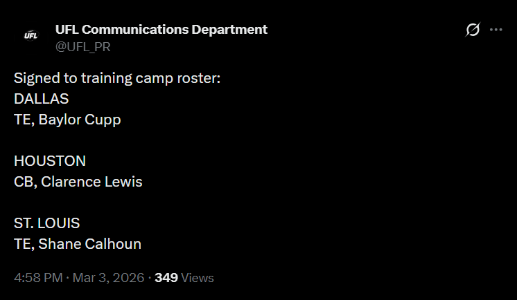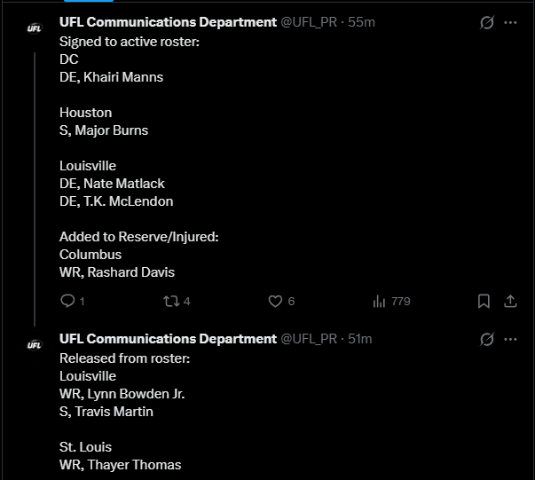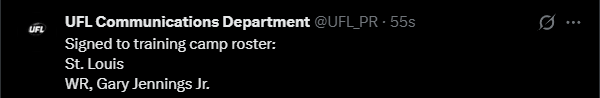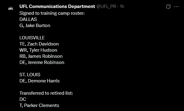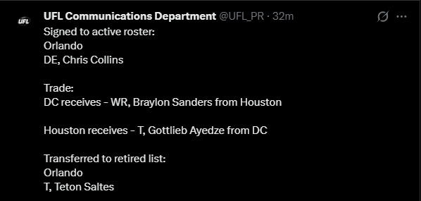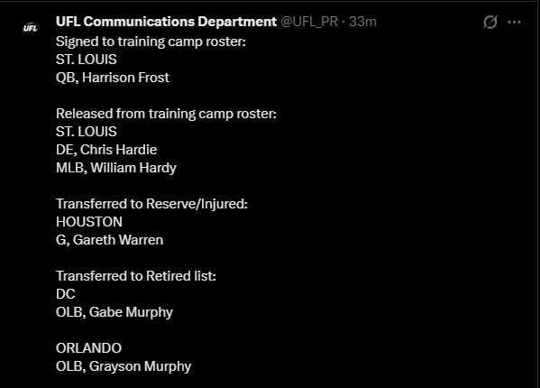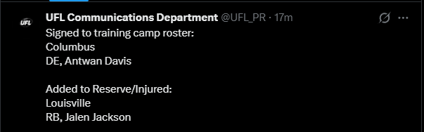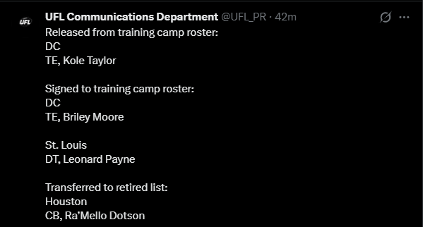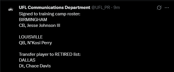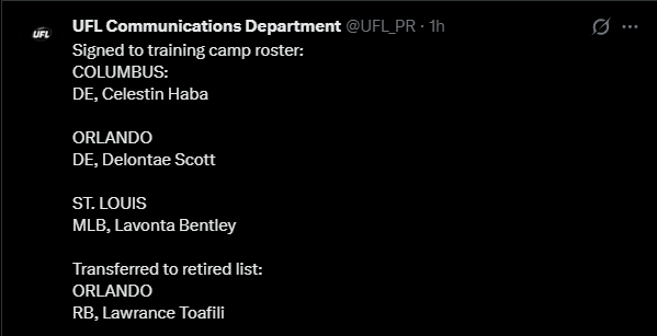 >WhatA general dedicated to the discussion of springtime-ish gridiron football leagues>WhoUFL(U.S), CFL(CAN), X-League(JPN), EFA(EU), LFA (MEX) and various other leagues that fluctuate in being alive>NewsUFL Players report to training camp - starts 2/23Season Starts 3/27 8PM ETTwo team expansion targeted for 202816 team target within the next 10 yearsLFA Schedule announcedLFA to receive $10 million from Global Sports Capital Partners in investmentCFL Combine 3/27 - 3/29CFL Draft 4/28Taylor Elgersma (CFL) will play for the Birmingham Stallions (UFL)Munich Ravens Join/Re-join EFATalks of Turkey Expansion Escalating >Thread QuestionWhat team/city should be resurrected for future expansion? (Hard mode no draggies or boates)
