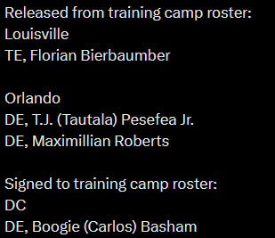 >>153637523move every team to florida for taxes and make them travel on the weekend. no first class tickets thatll come in phase II when revenue is up. >TE Florian Bierbaumer - Louisville Kings>DB Maceo Beard - DC Defenders