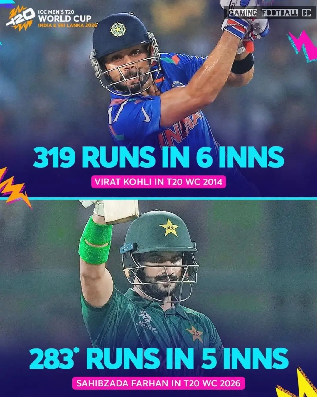 cut lund before wicket>13 sixes by Sahibzada Farhan in this tournament is the most a Pakistan batter hit in a WC edition, bettering 12 sixes by Mohammad Rizwan in 2021.