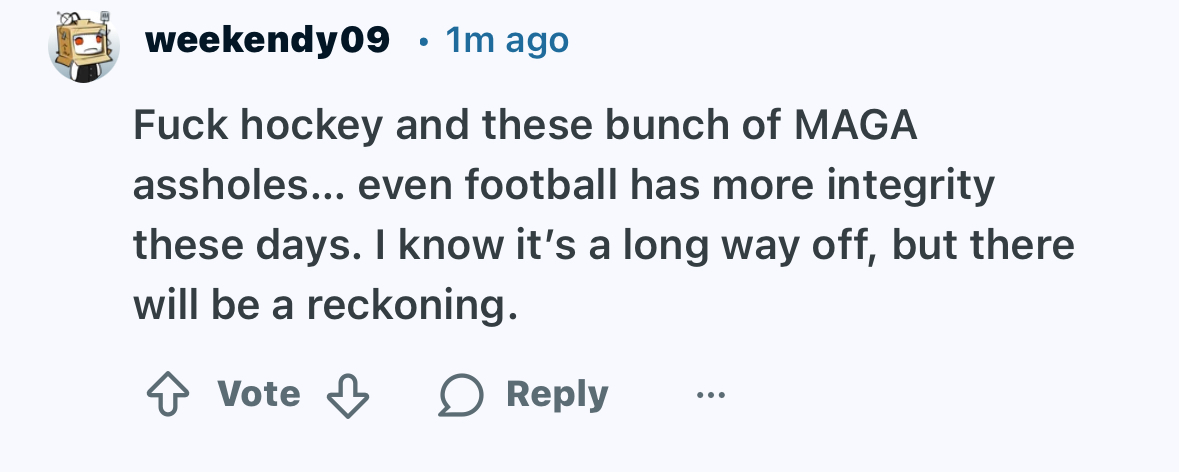 >I find it hilarious that those other anons don't realize this is just a copy/paste comment from r/hockey