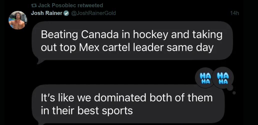 >>153642388>*>In 2026 the US mens defeated the canadian team; many leafs were buttmad and coping 4 more years buddy