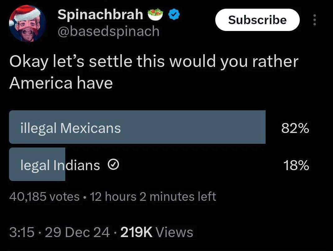 >>153648422I'd rather be 7% Indians than 25% mexicans