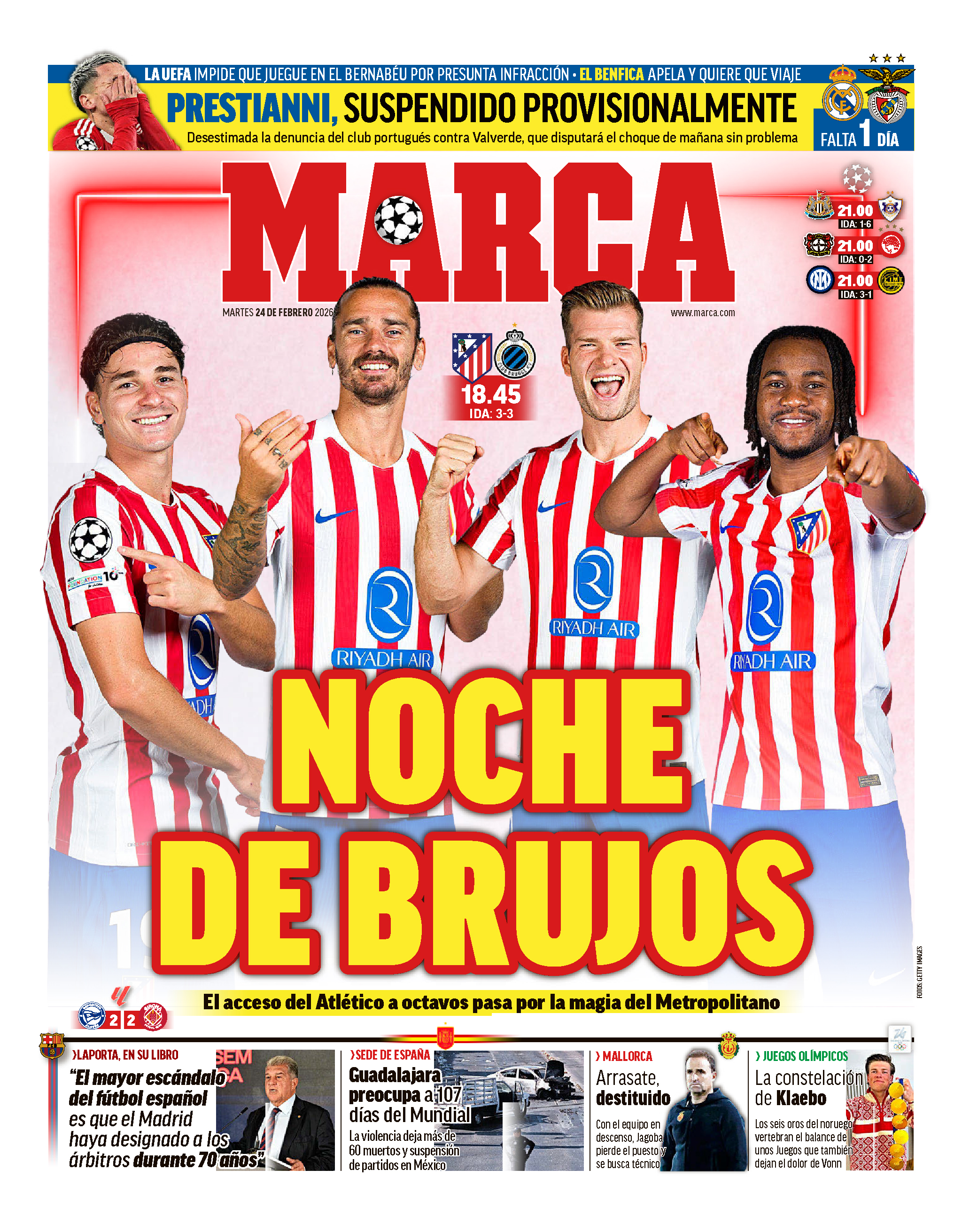 >Marteu Alemany shared his thoughts on Atlético Madrid's current situation on Movistar Champions League.>Optimism: "That's always the case. Before a match, especially at home, you have to be optimistic. The team will give 100%, and if we maintain this level, we can advance.">Club Brugge: "They're a very good team. All Champions League teams are at that level. They caused us a lot of problems. The team secured a good draw in the first leg, and today our fate is in our own hands. A win puts us through to the round of 16.">Lookman's benching: "The whole 'starter/substitute' thing is outdated with these schedules. Everyone is a starter and a substitute. The manager makes the decision based on fatigue, the number of matches played... We have a deep and varied squad to choose from.">Griezmann and his potential departure from the club. "We have no knowledge of any of this. Griezmann is a club legend. Today, we need to be here thinking about Club Brugge. Interest in our players exists, and it's something we have to live with. I can't guarantee anything. Griezmann has two and a half years left on his contract.">Julian's future: "Atlético has good players, and many clubs are interested in them. We haven't spoken with anyone, neither a candidate nor a potential candidate for Barcelona.">Support from the Metropolitano stands: "It's going to be packed, and they'll be behind the team to the death, I'm sure. I'm sure we'll all be celebrating in two hours."