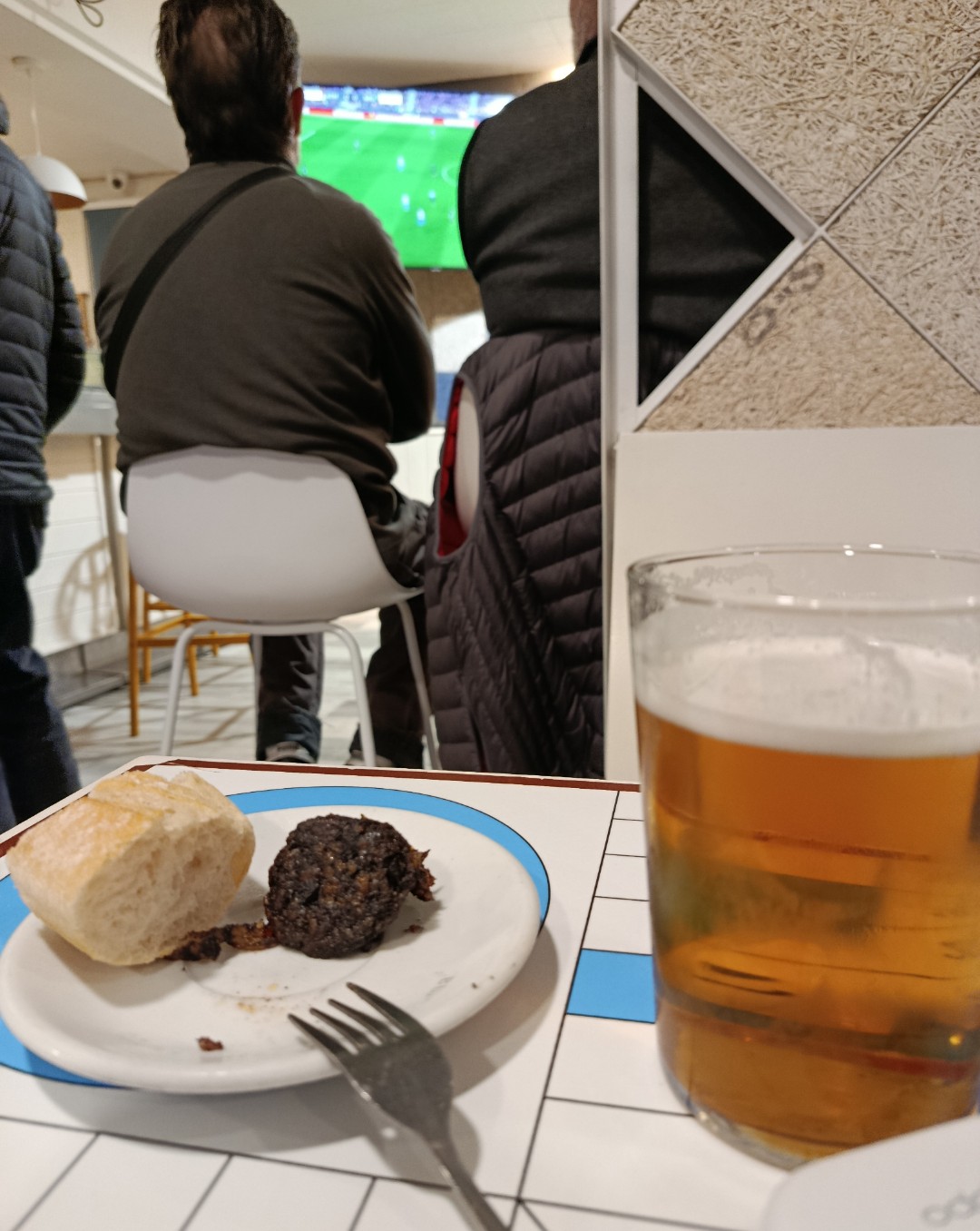 Im at a bar drinking beer, eating blood sausage and watching the game.Mi españolidad? INDUDABLE
