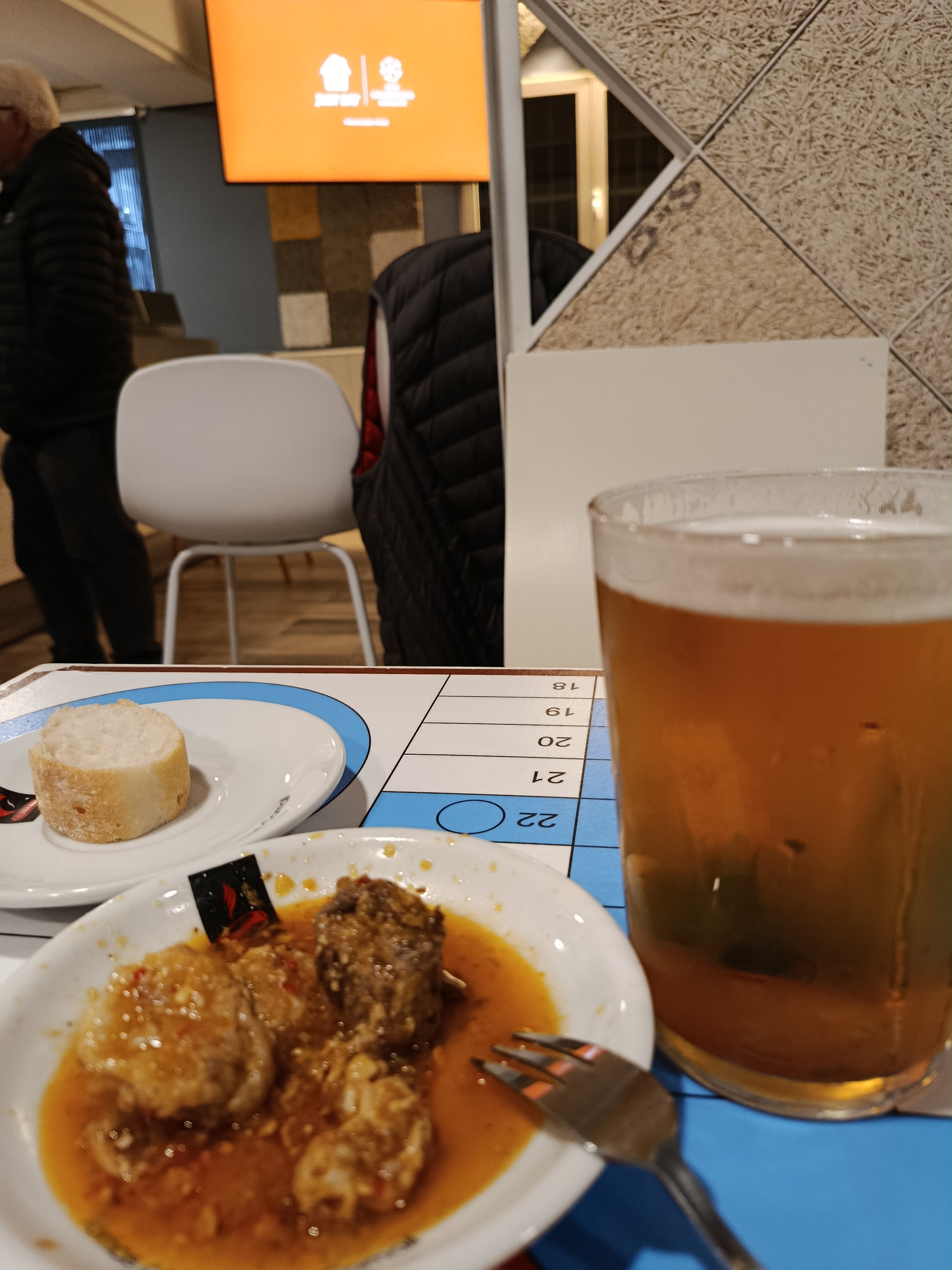 Last beer of the night. The grandpas all left. >>153652936We get a tapa of whatever they cooked that fay. Today It was migas, blood sausage, patatas bravas, rabbit with sause and moules