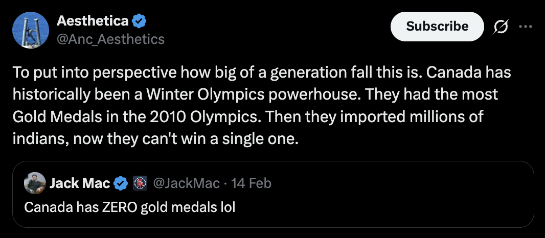 >>153652426>>153652439Do you guys remember when Can'tnada didn't even get top 10 at the 2026 Olympics? Kek